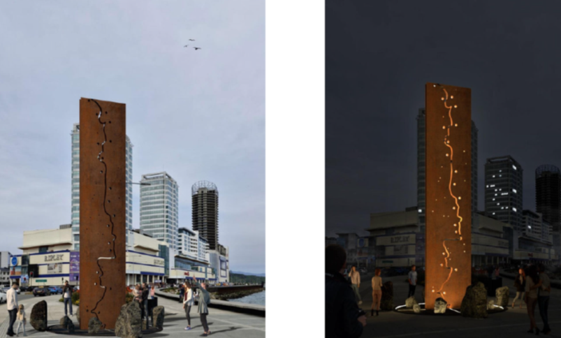 - Cascada Hito Cero: Inspirado en el movimiento del agua, este proyecto propone una caída vertical que refleja la fuerza de los ríos y cascadas australes. Busca transmitir fluidez, energía y la conexión esencial con la naturaleza.